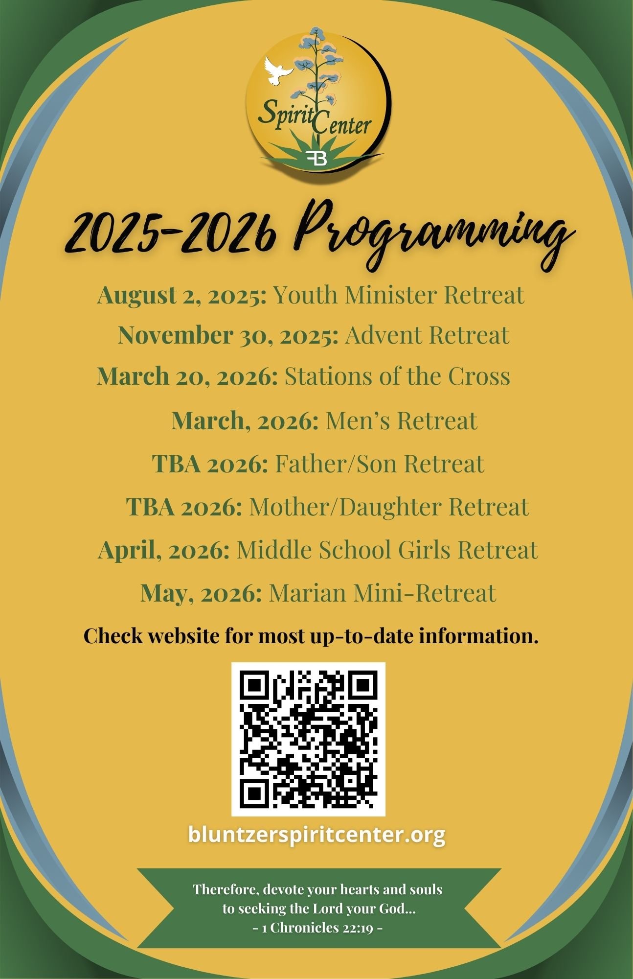 2025-2026 Schedule of Spirit Center Programs